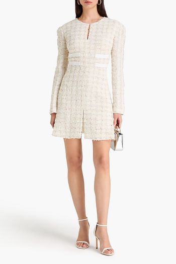 فستان قصير من الجاكار بلمعة معدنية مزين بكسرات