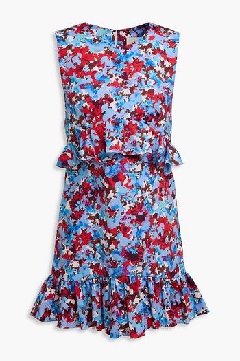 Floral-print denim mini dress