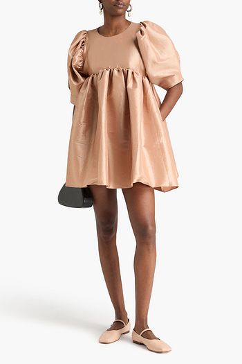 فستان قصير مصنوع من قطن بوبلين بتصميم مزموم