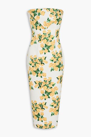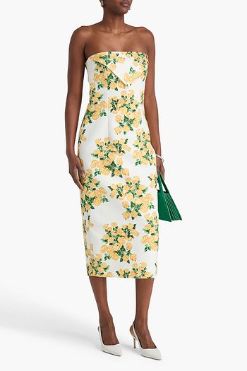 فستان بقصّة غير متماثلة تلتف حول الجسم من الحرير الصيني بطبعة أزهار