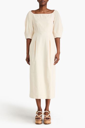 فستان متوسط الطول «إيسا» من مزيج من القطن بتطريز إنجليزي بتأثير مزموم مزين بفتحات