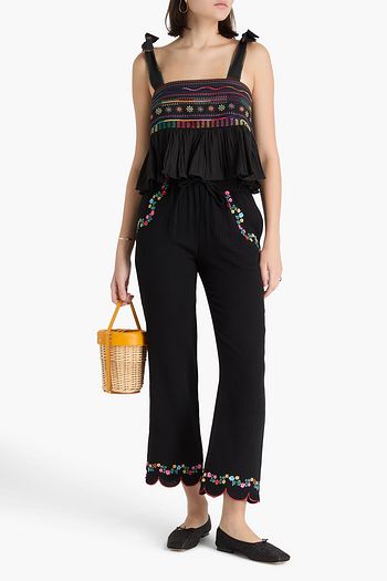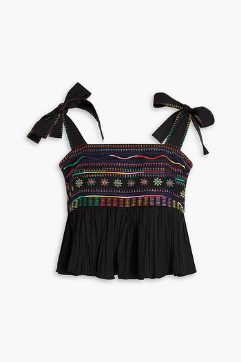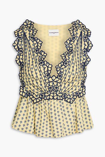 توب من الدانتيل بنمط المكرمية مطرّز من مزيج الكتان