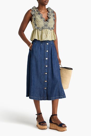 بلوزة ليفيا قصيرة من القطن بياقة هالتر الدائرية وبكشكشة عند الخصر بتطريز إنجليزي