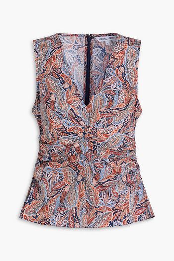 Gabi cutout ruched printed Lyocell-jersey top