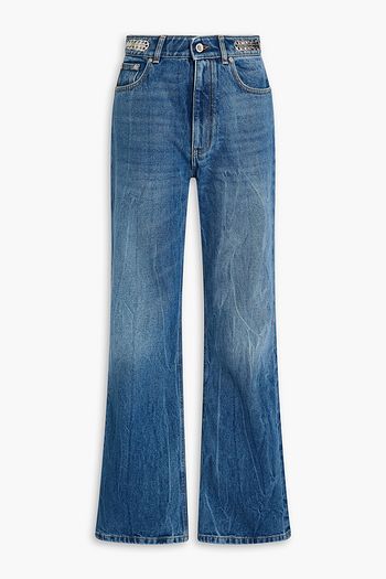 جينز بأرجل مستقيمة وخصر مرتفع ومزين بالكريستال