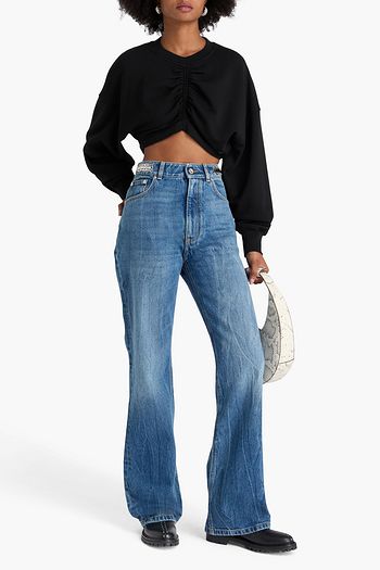 بنطال جينز بحواف واسعة وبخصر مرتفع باهت اللون