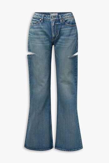 بنطلون جينز بقصة أرجل مستقيمة وخصر مرتفع بتصميم ممزق