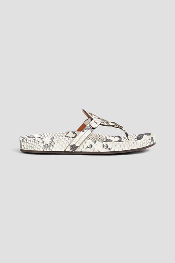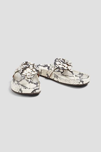 حذاء باليرينا مسطح من الجلد بنمط جلد الثعبان مزين بزخارف