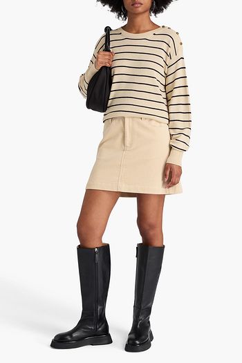 Cropped striped stretch-knit sweater