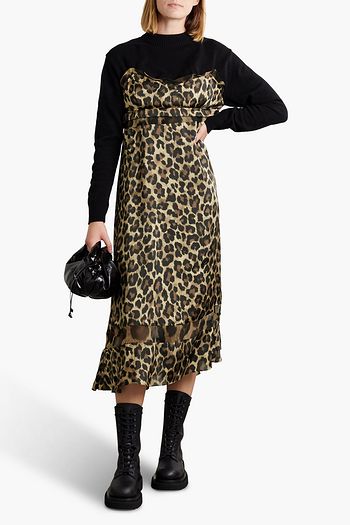 Chain-embellished snake-print metallic coated faux leather maxi dress