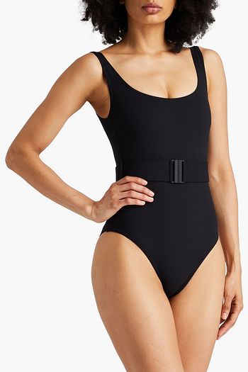 قطعة بيكيني علوية من نسيج ECONYL المطاط بثنيات بقصة بشكل باندو وأسلاك سفلية