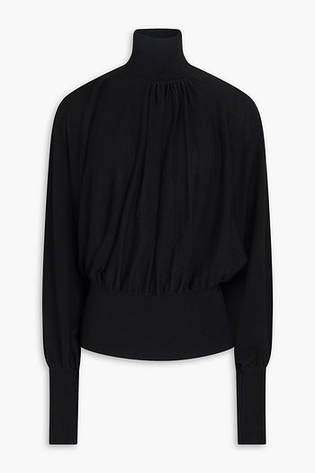 كنزة رياضية من مزيج الحرير والصوف بياقة عالية وتصميم مكشكش