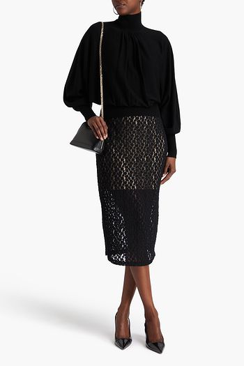 كنزة رياضية بياقة عالية من مزيج الصوف محبوك بحبكة كروشيه