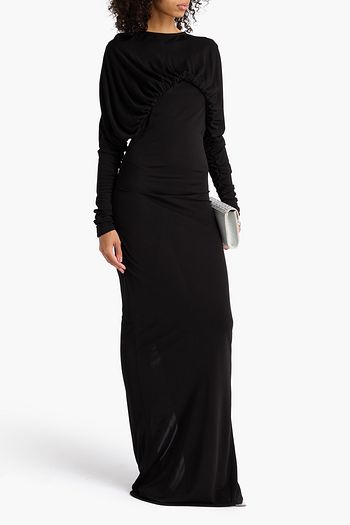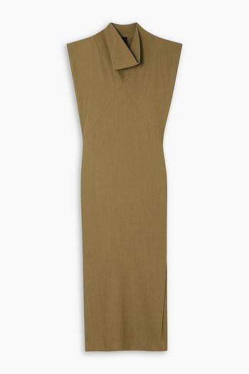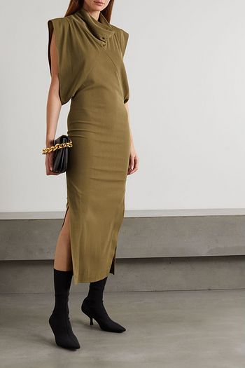 فستان متوسط الطول من الجيرسيه المرن مكشكش