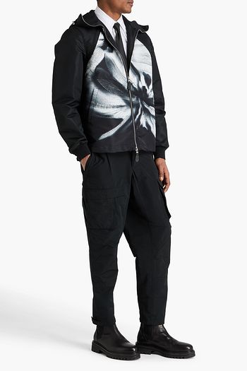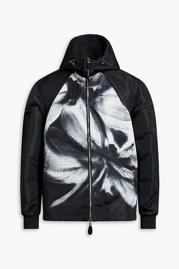 جاكيت بقبعة من قماش عازل مزين بطبعات