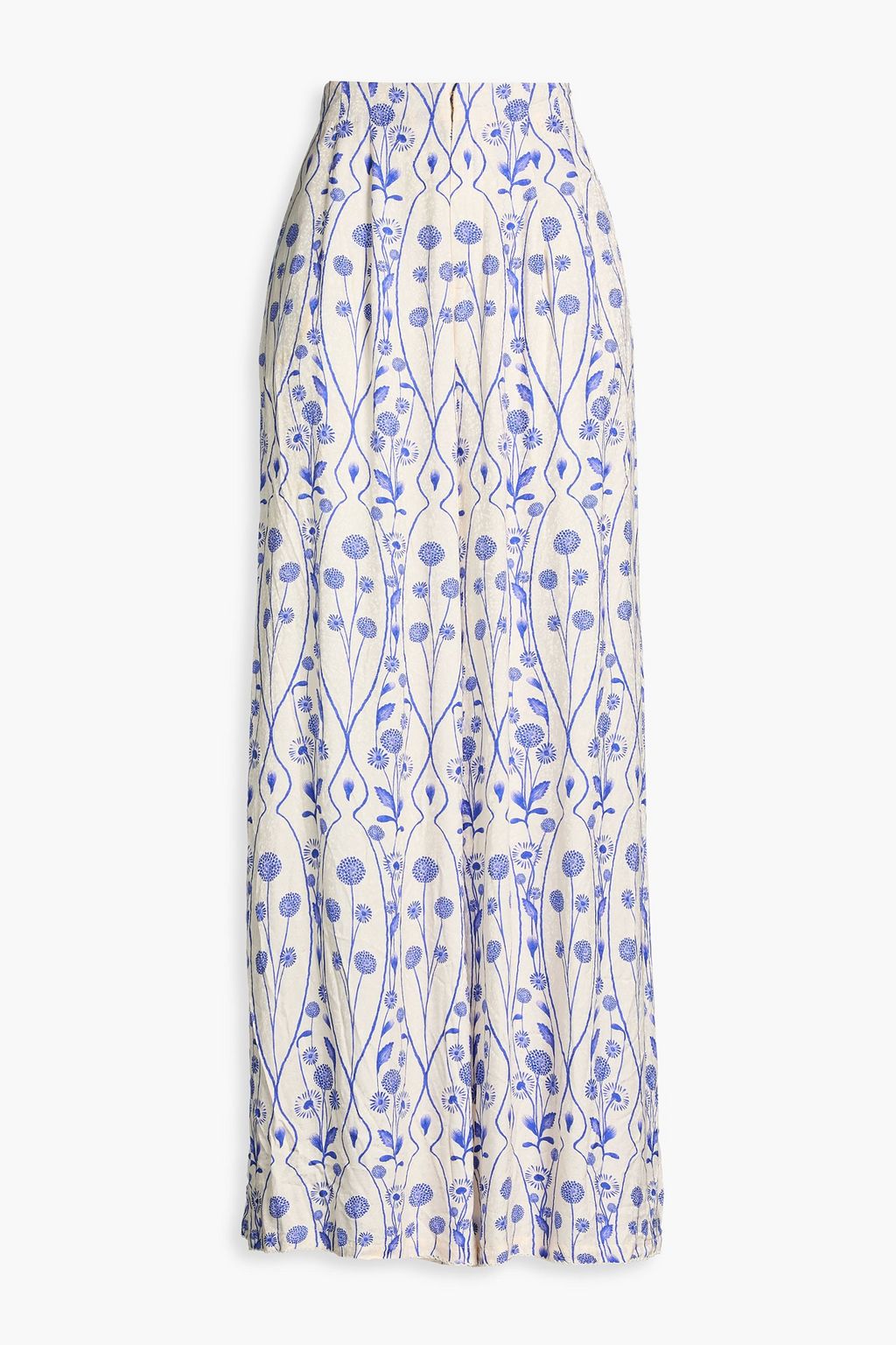 AGUA BY AGUA BENDITA بنطال بأرجل واسعة من الساتان بطبعة الأزهار بكسرات