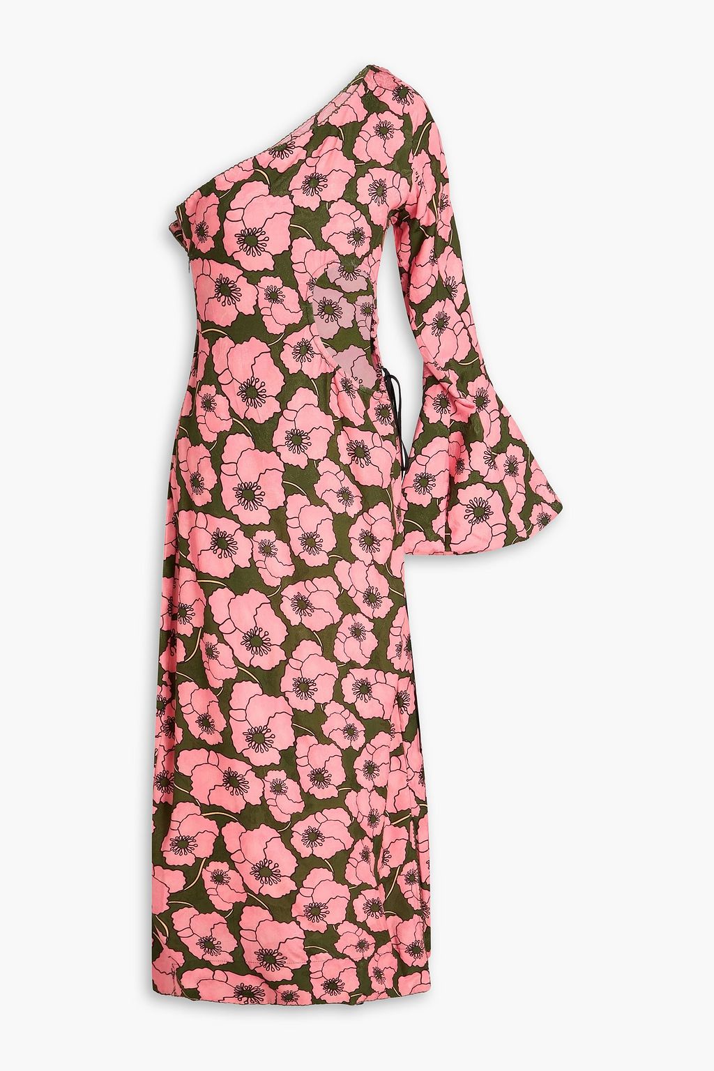 AGUA BY AGUA BENDITA فستان متوسط الطول بكتف واحد من الجاكار المصنوع من مزيج إيكوفيرو™ مزين بطبعة الأزهار وبفتحات