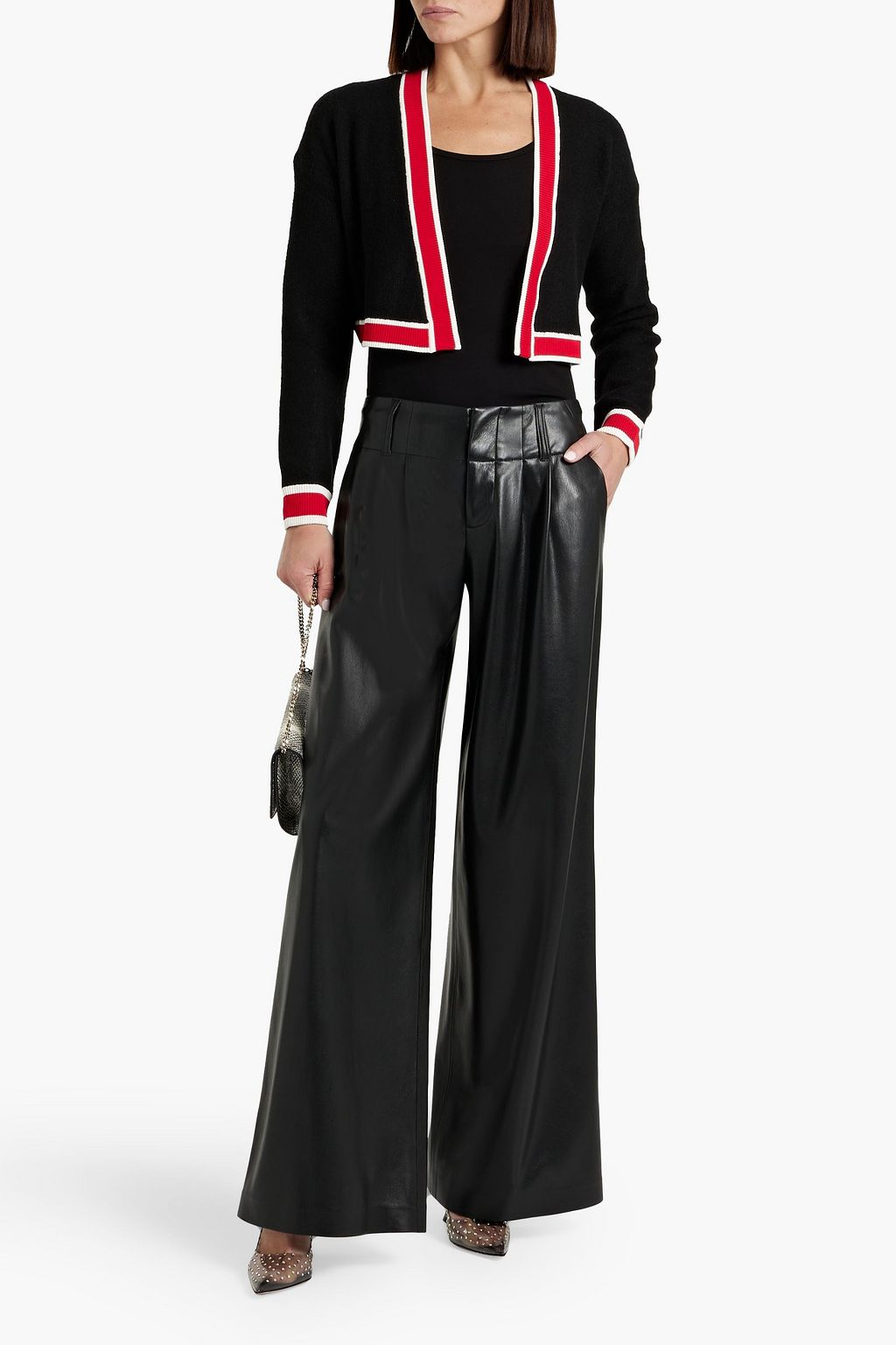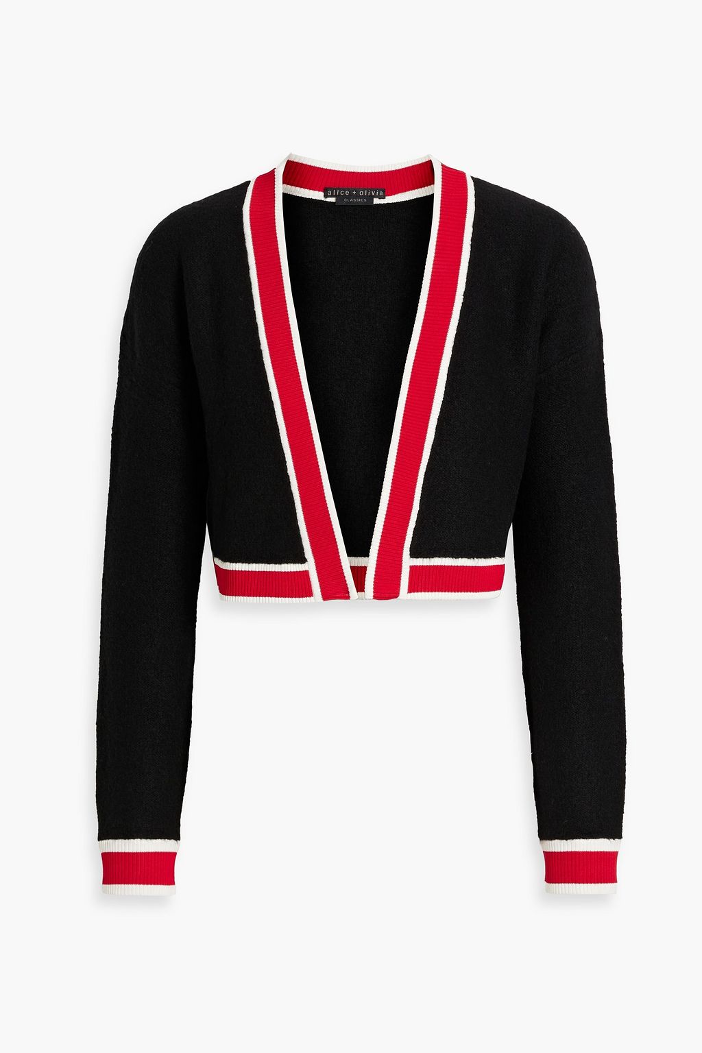 ALICE + OLIVIA كارديغان قصير "جوانا" مصنوع من نسيج محبوك بتصميم مخطط