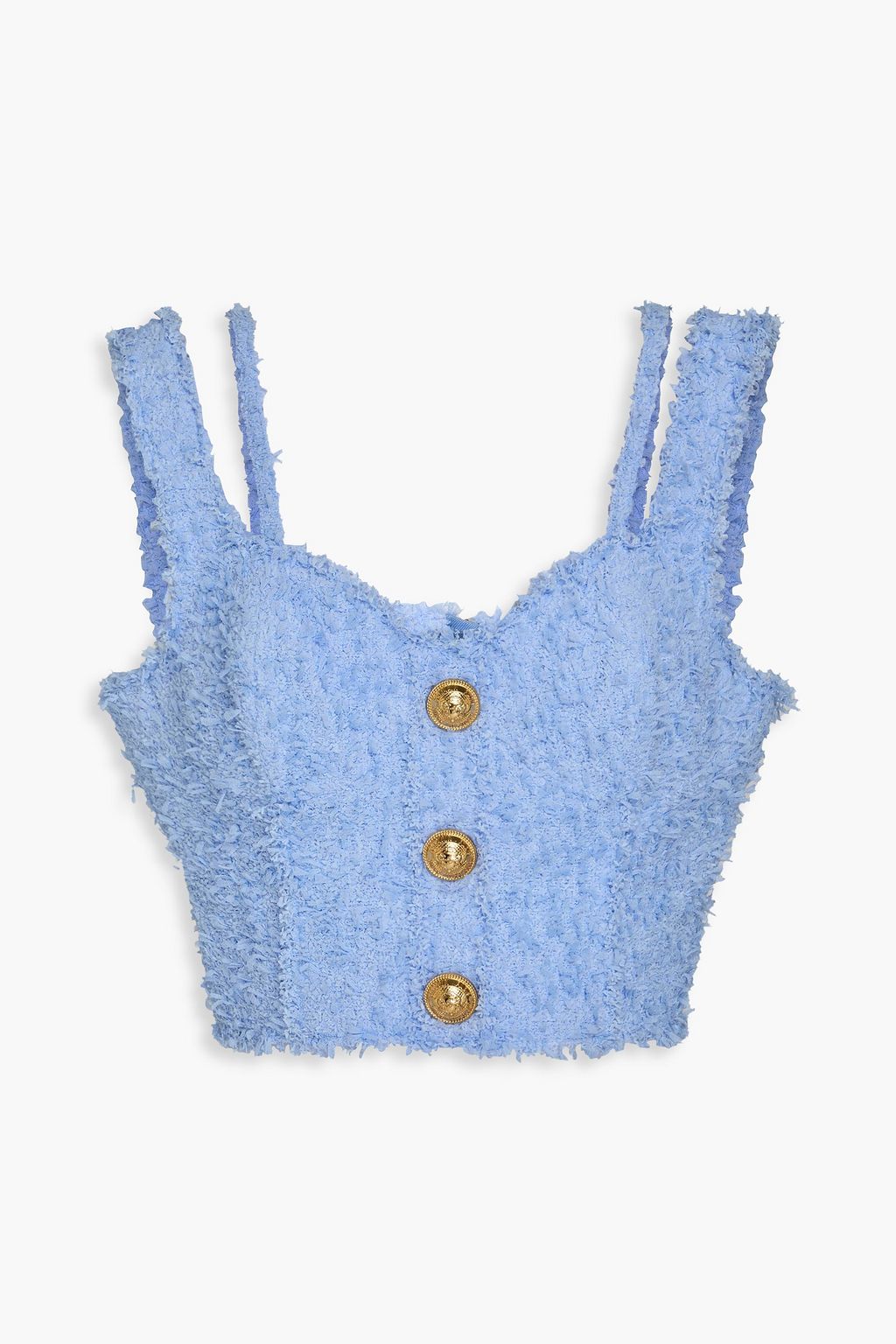 BALMAIN بلوزة قصيرة من التويد بتصميم مزركش