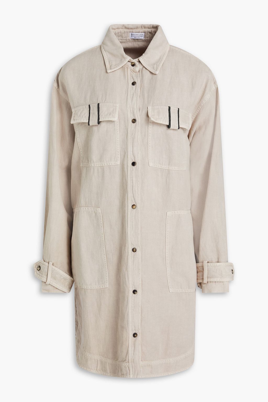 BRUNELLO CUCINELLI شورت من القطن والتويل المصنوع من مزيج الكتان مزين بالخرز