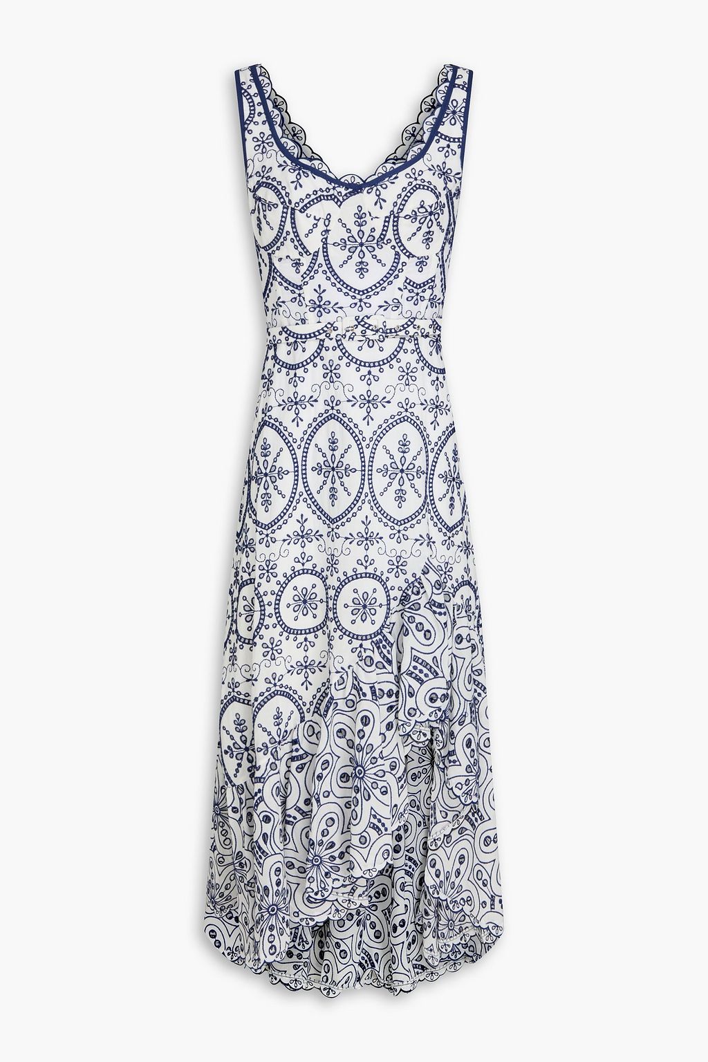 CHARO RUIZ IBIZA فستان متوسط الطول "تاتيانا" مصنوع من مزيج من القطن بتطريز إنجليزي ومزين بكشاكش ومزود بحزام