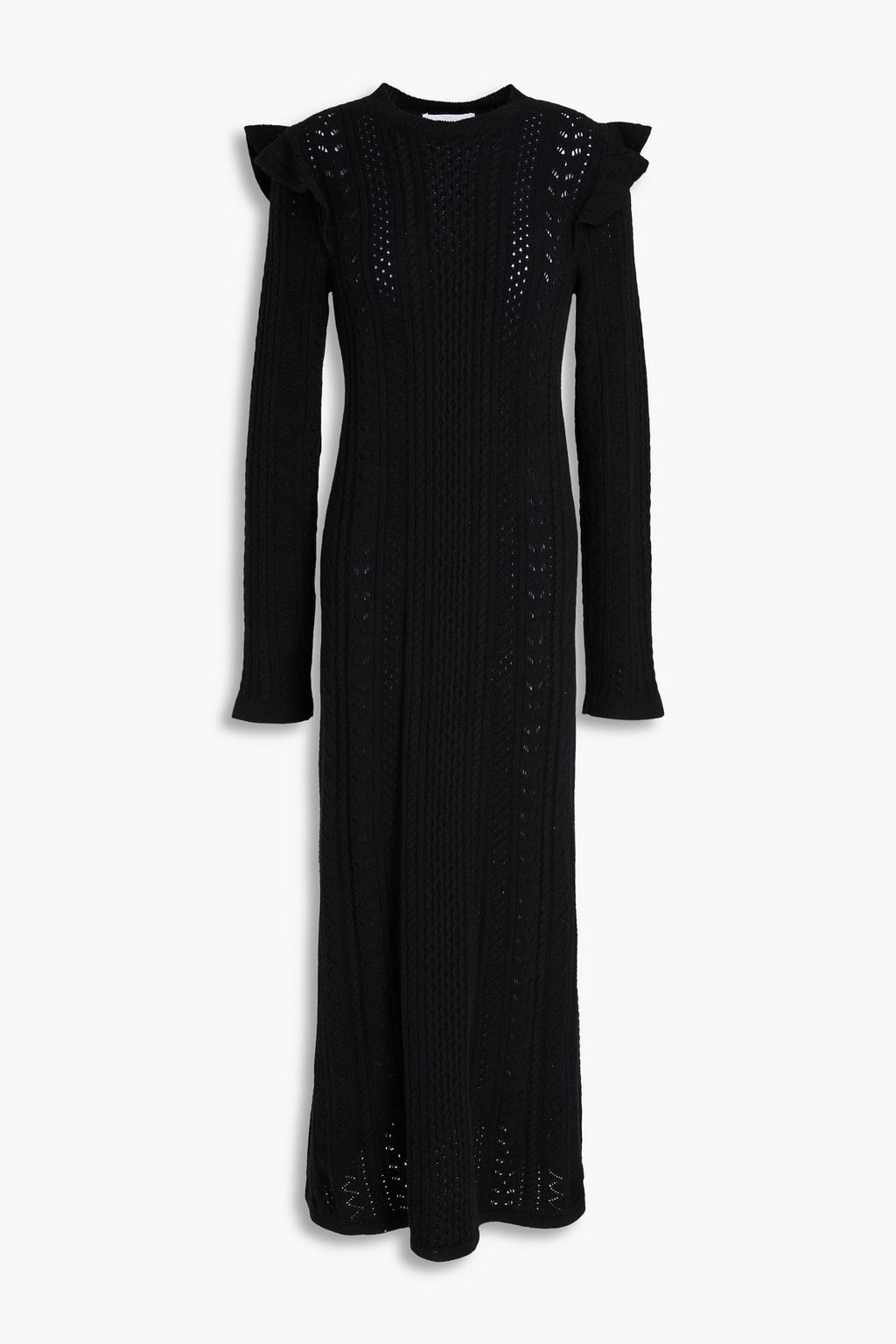 CHLOÉ فستان متوسط الطول من مزيج الكشمير والصوف بحبكة بوانتيل بكشاكش