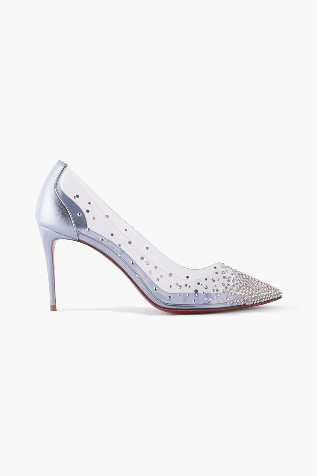 تقدّم علامة Christian Louboutin حذاء بامب 'Degrastrass' الذي يتسم بلون أزرق مثالي للعروس المعاصرة. صُمّم بمقدمة مدببة أنيقة وهو مصنوع في إيطاليا من الجلد المعدني والبلاستيك الشفاف مع كريستالات عاكسة للضوء ليبدو وكأنّه عائم فوق قدمك.