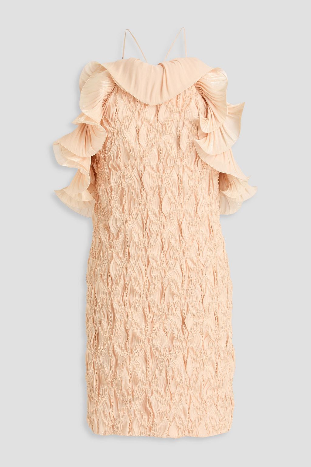 COSTARELLOS فستان قصير من الجورجيت بتقنية السموك وبكشاكش