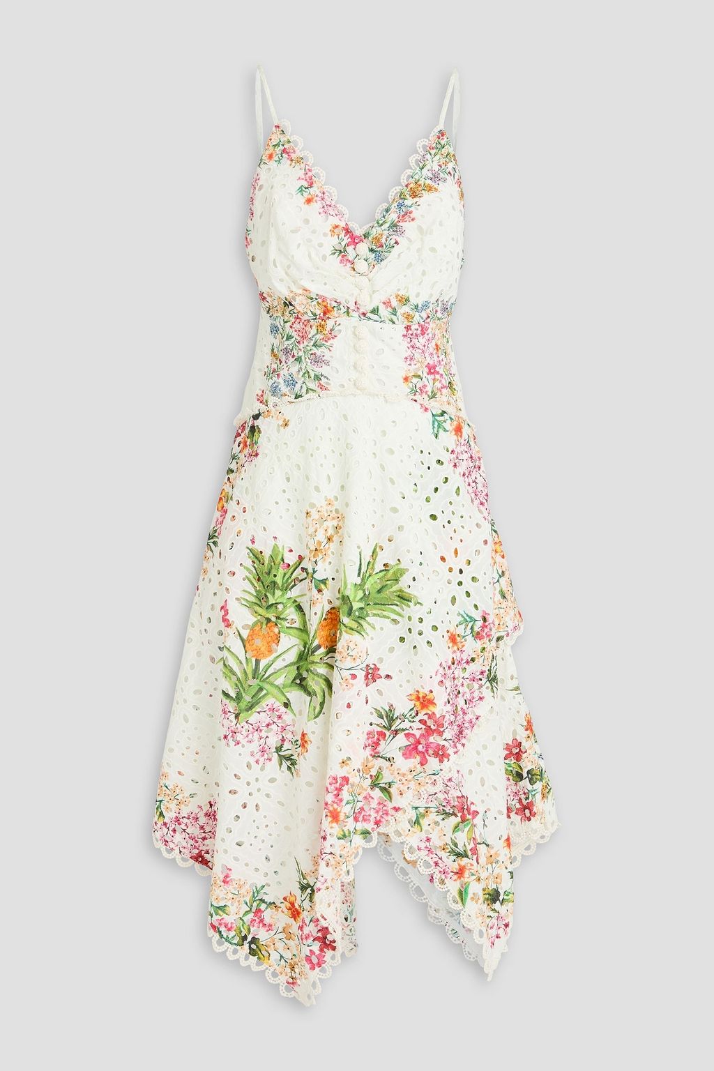 FARM RIO فستان متوسط الطول من القطن بتطريز إنجليزي بطبعات على شكل زهور
