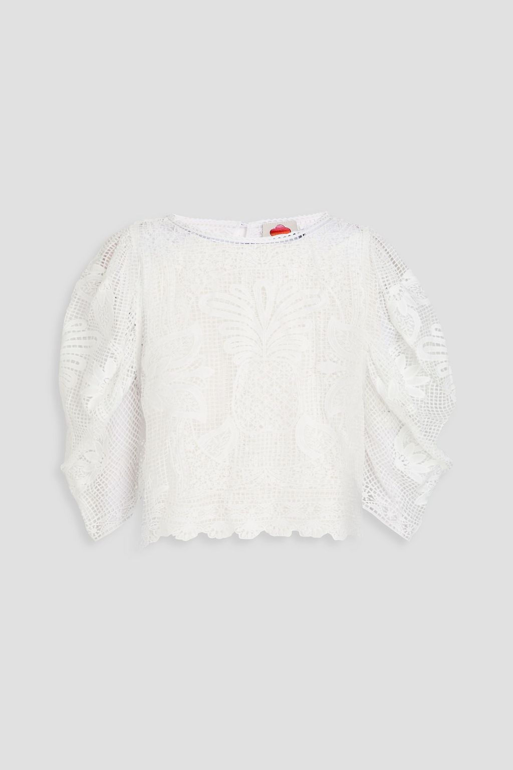 FARM RIO بلوزة قصيرة من الدانتيل بحبكة كروشيه