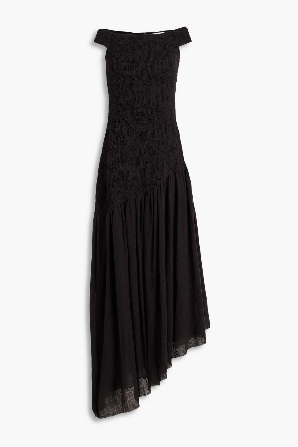 GABRIELA HEARST فستان "فيلوسو" من قماش رقيق من مزيج الكتّان والحرير بتصميم مكشوف الكتفين بقصّة غير متماثلة