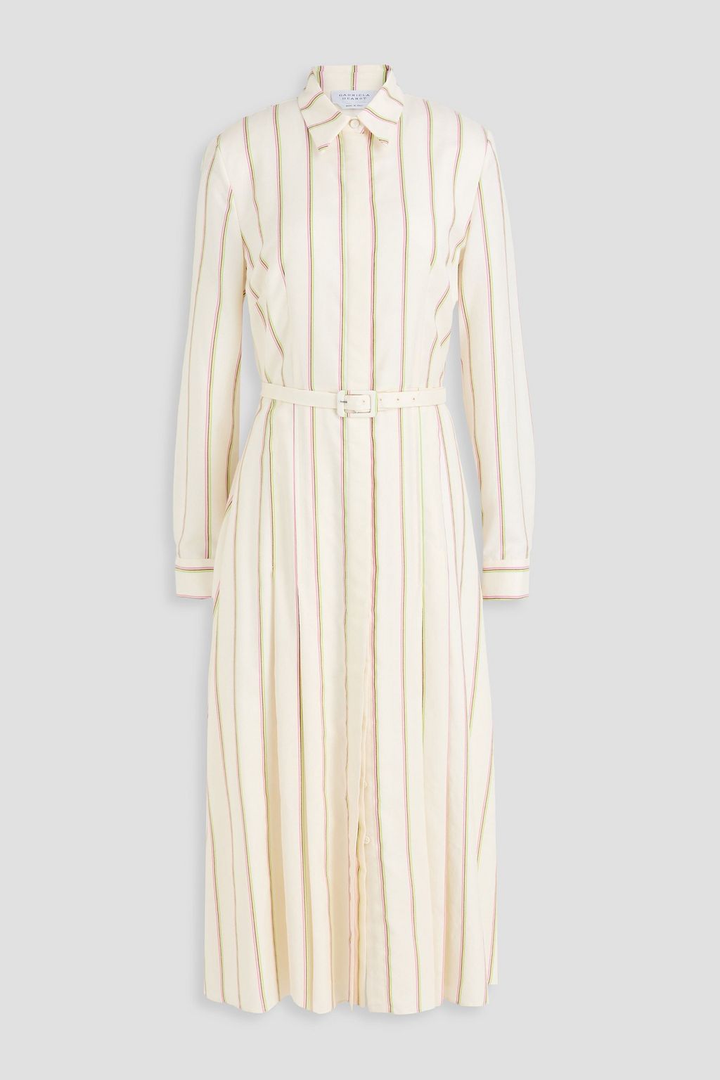 GABRIELA HEARST فستان متوسط الطول "فانيسا" بأسلوب القميص من الصوف والتويل المصنوع من مزيج الحرير مخطط وبحزام