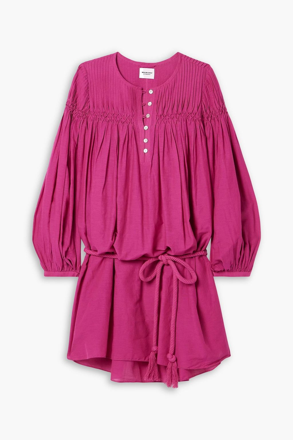 MARANT ÉTOILE Adeliani belted pintucked smocked cotton-blend voile mini dress