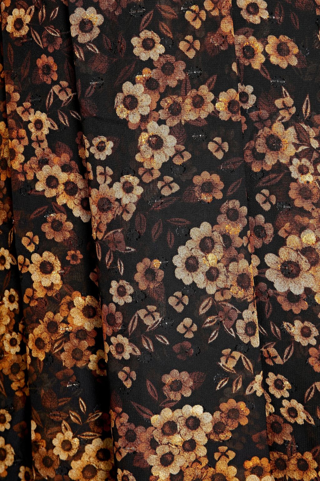 MIKAEL AGHAL فستان من الشيفون بنمط فيل كوبيه بلون معدني مزين بكسرات وطبعة الأزهار