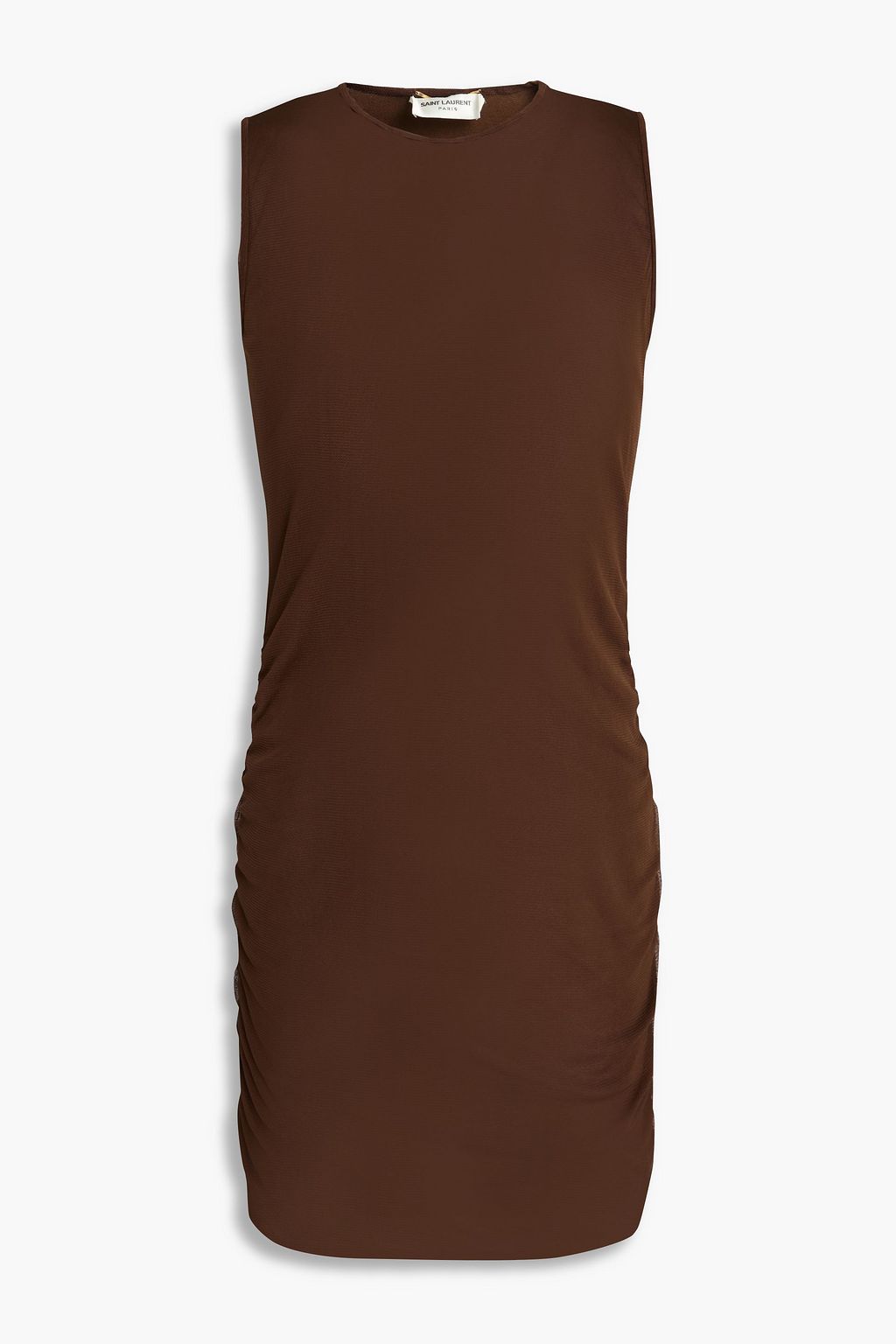 SAINT LAURENT فستان قصير مصنوع من الشبك المطاطي بتأثير مزموم