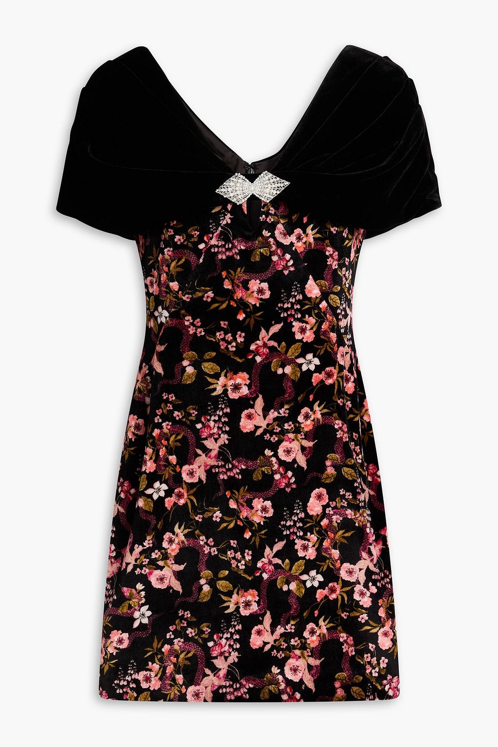 SALONI فستان قصير من المخمل بتصميم مزركش مزين بفتحات