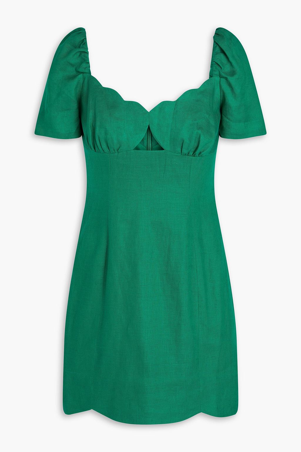 SALONI فستان هالي متوسط الطول من الكتّان بحواف متموّجة بفتحات