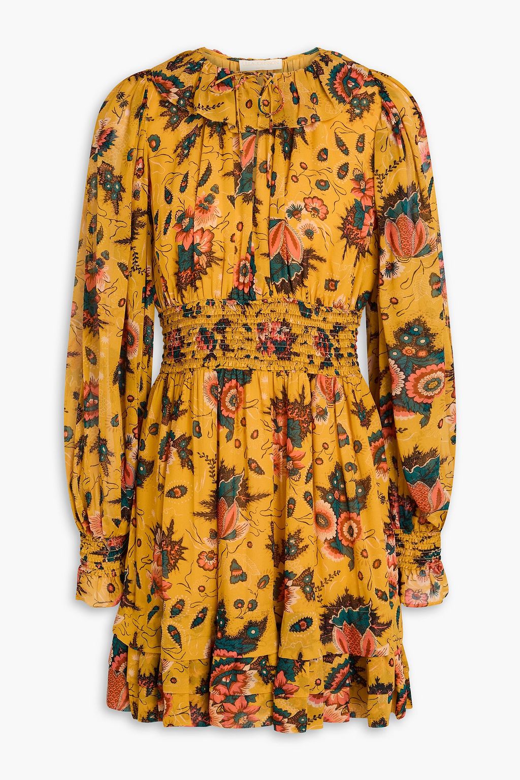 ULLA JOHNSON فستان قصير «أدارا» مصنوع من حرير شيفون مزين بكشاكش وبطبعة الأزهار