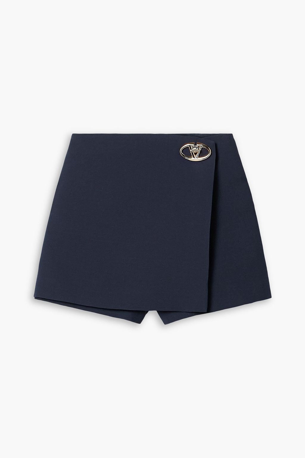 VALENTINO GARAVANI Embellished wrap-effect wool and silk-blend mini skirt
