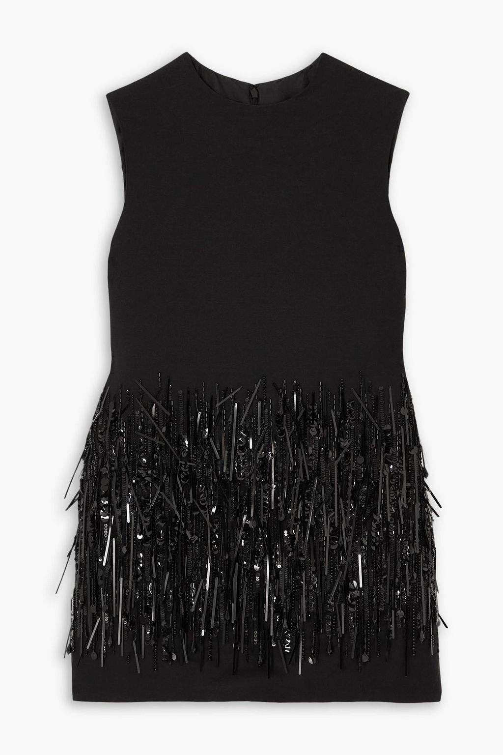 VALENTINO GARAVANI فستان قصير من الكريب المصنوع من مزيج الحرير والصوف مزين بشرّابات