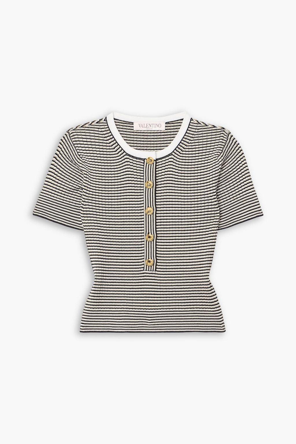 VALENTINO GARAVANI Cropped metallic striped ribbed cotton-blend top