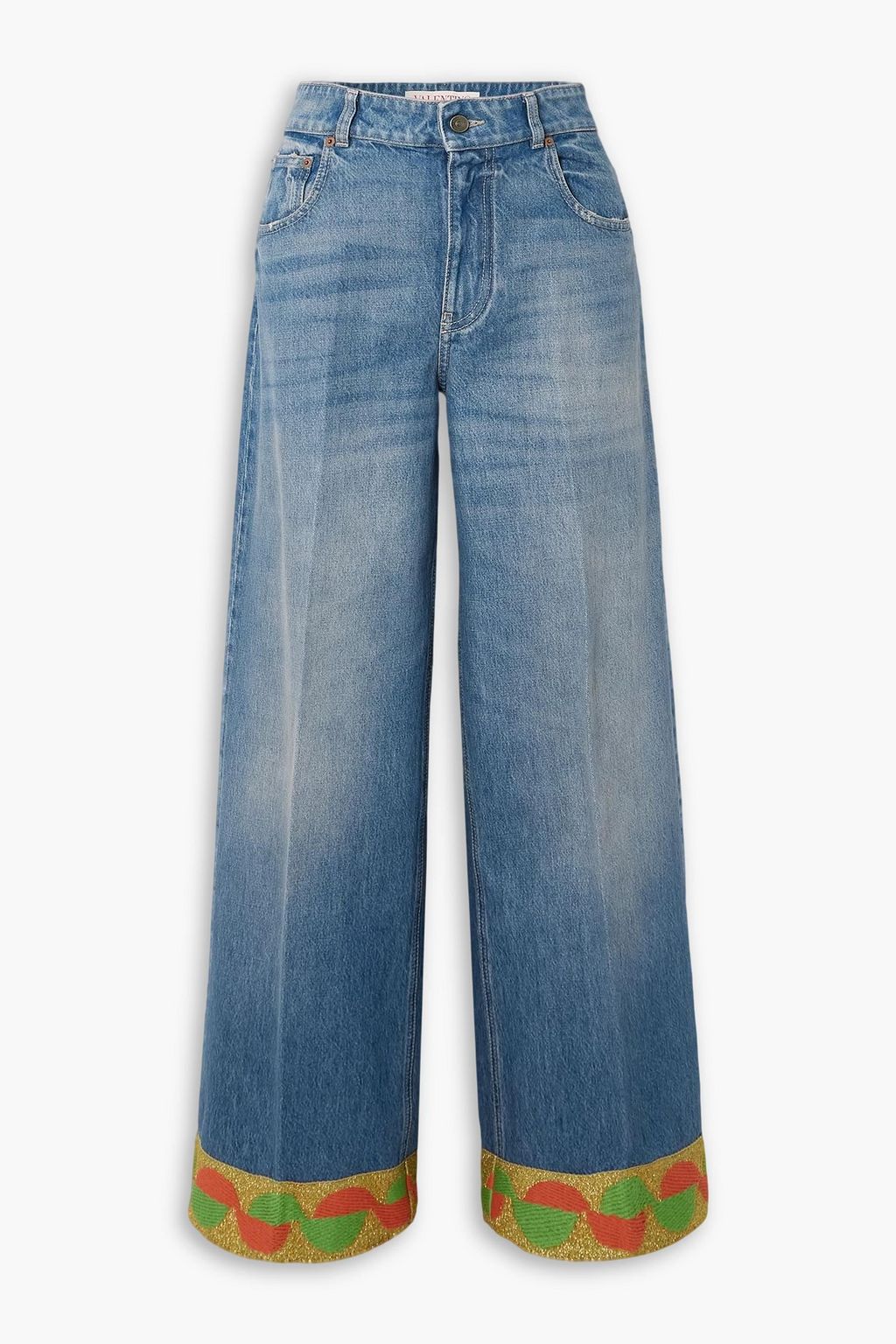 VALENTINO GARAVANI Metallic jacquard-trimmed high-rise wide-leg jeans