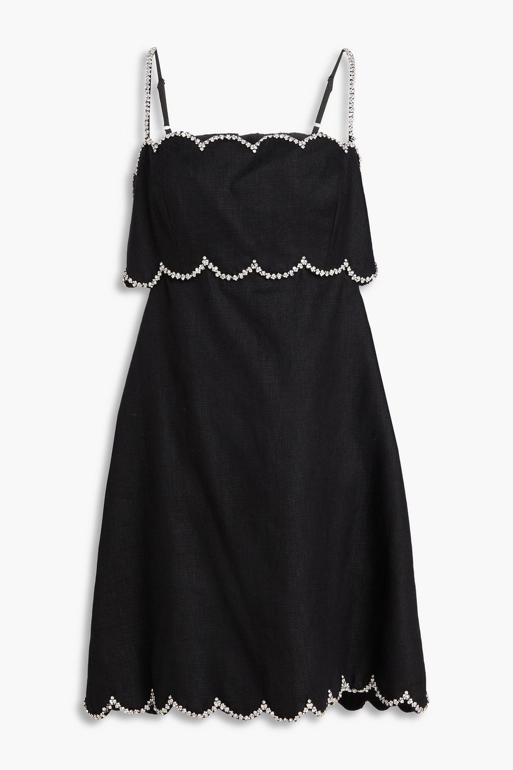 ZIMMERMANN فستان قصير من الكتان بحواف متموّجة مزين بالكريستال وبفتحات