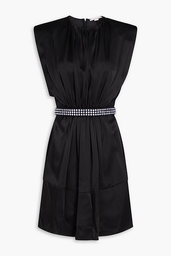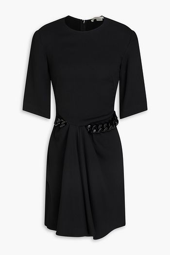 فستان قصير من الكريب بتصميم منسدل مزين بسلسلة