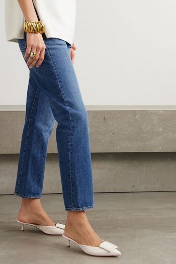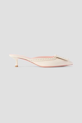 حذاء ميول من الجلد مزين بلؤلؤ صناعي