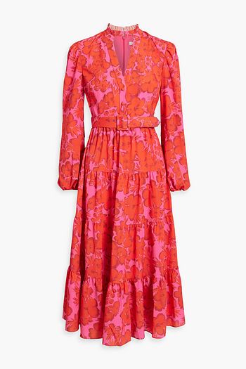 Gestuftes Midikleid aus Crêpe mit floralem Print und Gürtel