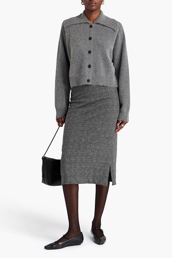 Cropped Cardigan aus einer gerippten Woll-Kaschmirmischung