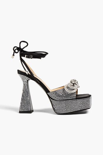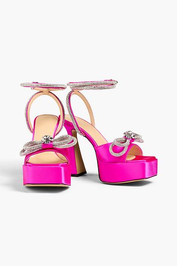 Plateausandalen aus Satin mit Kristallverzierung und Schleife