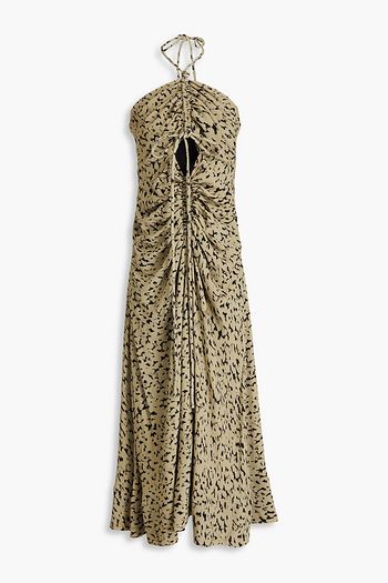 Gerafftes Neckholder-Maxikleid aus Crêpe mit Print