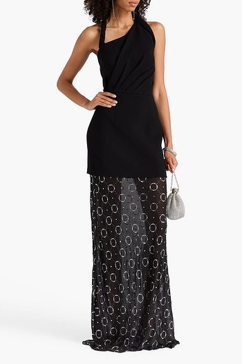 Phaedra Robe aus plissiertem Lamé mit Applikationen